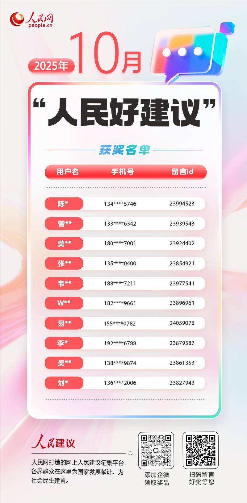10 月“人民好建议奖”榜单上线 看看哪些建议戳中你